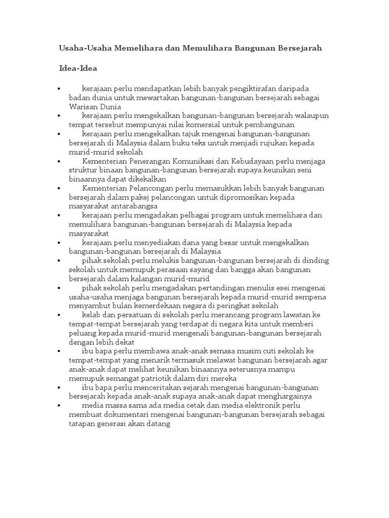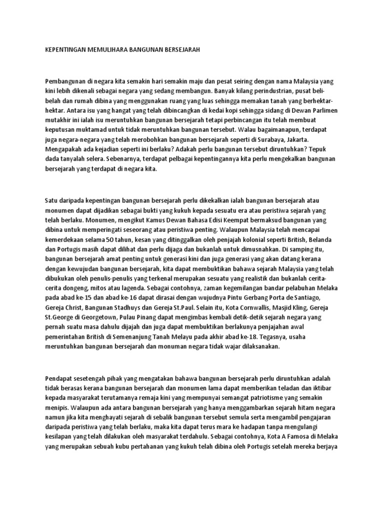 Contoh Karangan Usaha Usaha Memelihara Dan Memullihara Bangunan Bersejarah Pdf